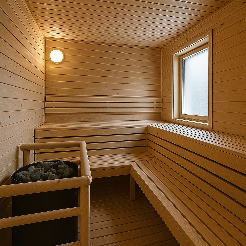 - Saunavalaisimien vaihto moderniin, LED-valaisimeen, joka korostaa puupintojen luonnollista sävyä.